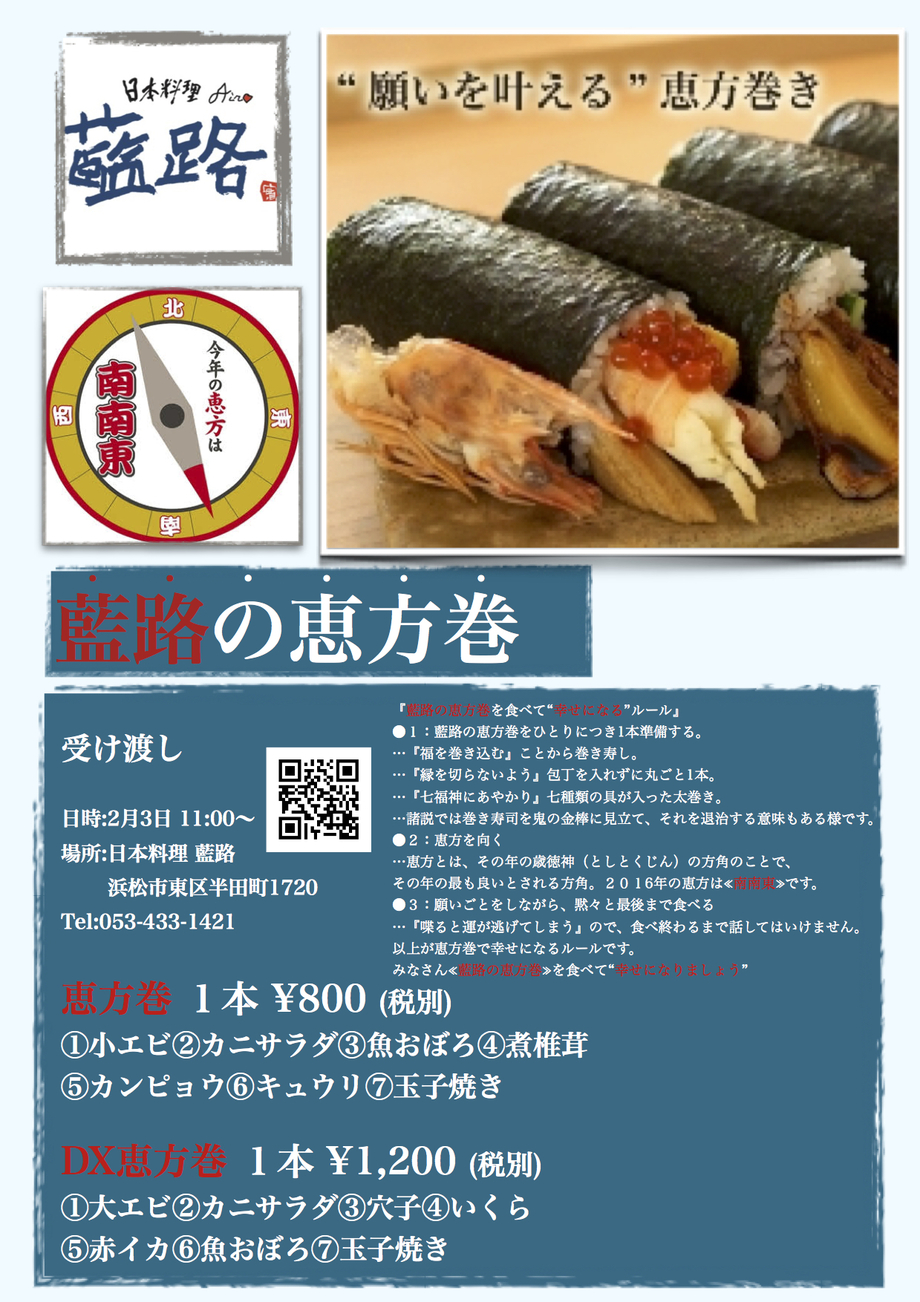 是非藍路の恵方巻きを食べて幸せになりましょう!